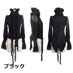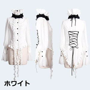 ゴスロリ ブラウス 長袖 編み上げ リボン ハイネック ブラウス ロリータ シャツ ゴシック 貴族風 ホワイト ブラック 学園祭 文化祭 パーティー 演奏会 演劇 貴族服 XS/S/M/L/XL/2XL/3XL dk036x1x1d4