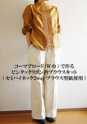 【ソーイングキット】ピンタックリボン衿ブラウス(セミハイネック2wayブラウス型紙・追加パーツ使用) 100/2コーマブロード(W巾)キット