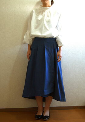 ■難所 特にありません ◆参考用尺(1人分) ・Aデザインの場合 ・表地(132cm巾の場合)=約148cm ・Bデザインの場合 ・表地(108cm巾の場合)=約189cm ・スナップボタン=2個 ・12コールゴム ◆コーディネイト使用パターン ・ワンタックテーパードパンツ(9分丈)型紙 ・フィッシュテイルラップ風スカート型紙 ◆Size(cm) サイズ 着丈 胸囲 肩幅 イレギュラー袖丈 ボリューム袖丈 M 62 100 39 53 63 L 63 106 40 54 64 ※着用モデルは身長160cmでMサイズを着用 しています。