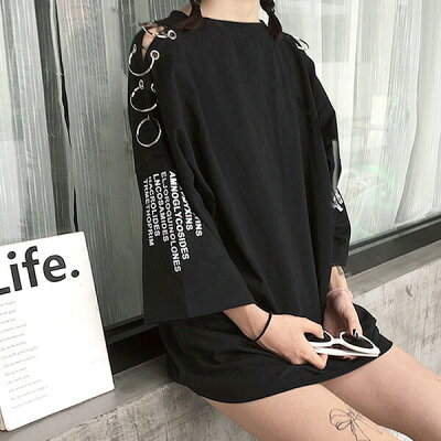 【即納あり】 Tシャツ レディース カットソートップス 七分袖 半袖 ビッグシルエット 大きいサイズ シルバーリング ストリート ファッション レディース ゆめかわいい 服 奇抜 派手 個性的 ダンス 衣装 練習着 コスチューム ヒップホップ 韓国