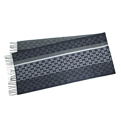 GUCCI定番のGGパターンに同系色のグラデーションラインがアクセントになったマフラー。