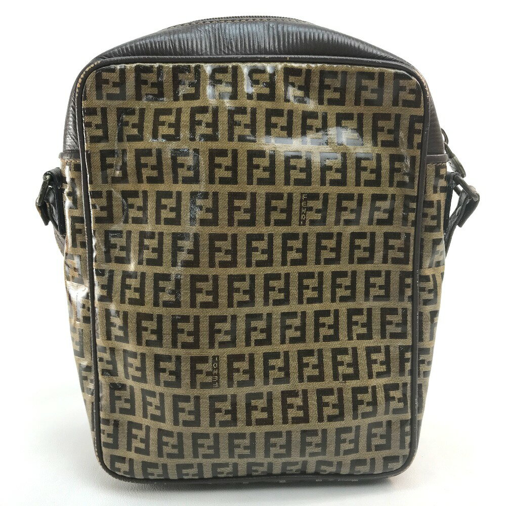 FENDI フェンディ ヴィンテージ ズッカ FF柄 ロゴスタンプ ポシェット ショルダーバッグ ビニール/レザー レディース ベージュ ベージュ×ブラウン 【中古】