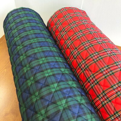 ナイロンキルティング生地/撥水加工ナイロンオックス生地のキルティングです/先染めのタータンチェックとブラックウォッチ柄のキルト生地/クッション性があり撥水性もあるのでタブレットケースやエコバッグなどに/ナイロンキルト/入園入学/