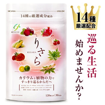 カリウム サプリ サプリメント コーンシルク クランベリー ビーツ ザクロ トウキ メリロート コエンザイムQ10厳選14種配合 りさら 120粒 30日分 健やかの杜 送料無料