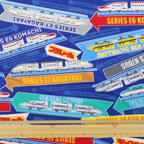 【オックス】キャラクター 生地 布 プラレール 幅約110cm 50cmカット 電車 子ども 男の子向け - 送料無料※600円以上 メール便発送